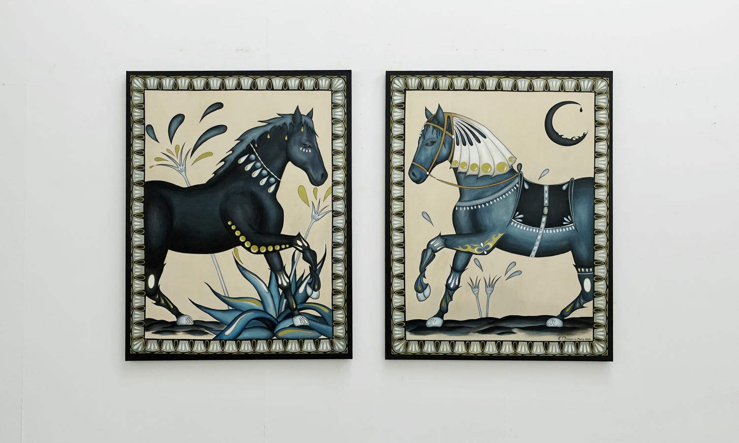 Created during a period of reflection on her home country, Los Caballos explores the tension between freedom and belonging. Two horses — one adorned, one wild — stand as symbols of love, restraint, and the human need for choice. Inspired by childhood memories and personal loss, the work questions whether we can ever be truly free without following what we love.