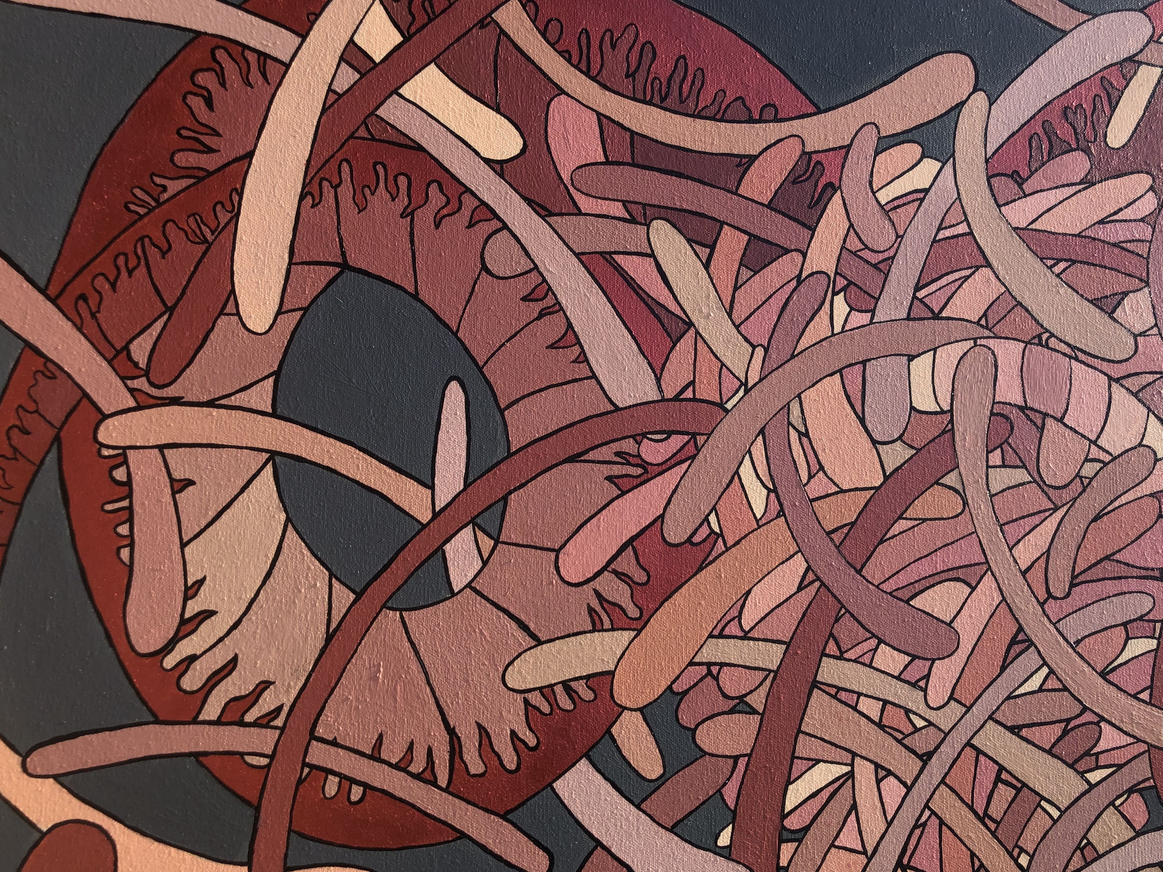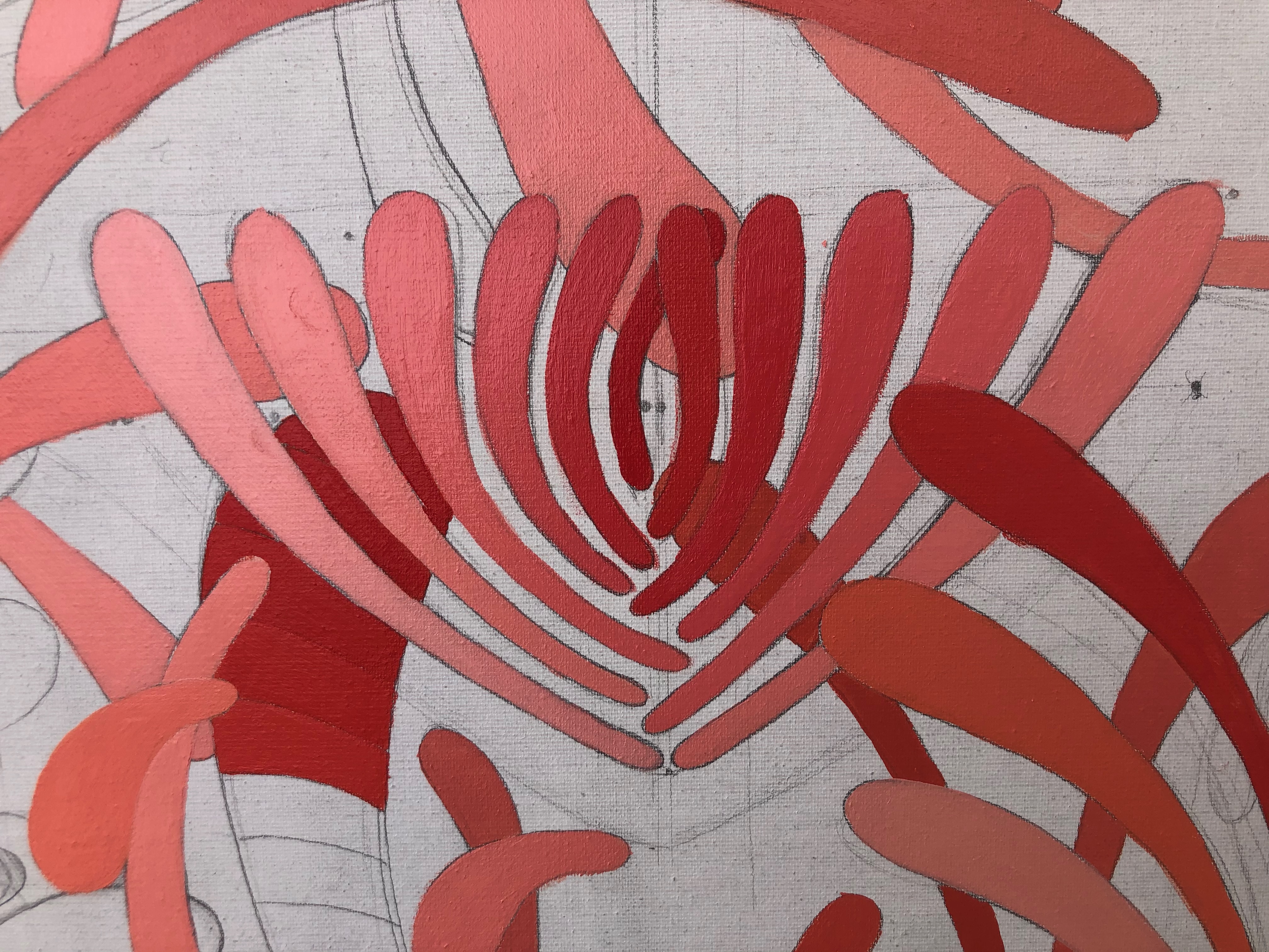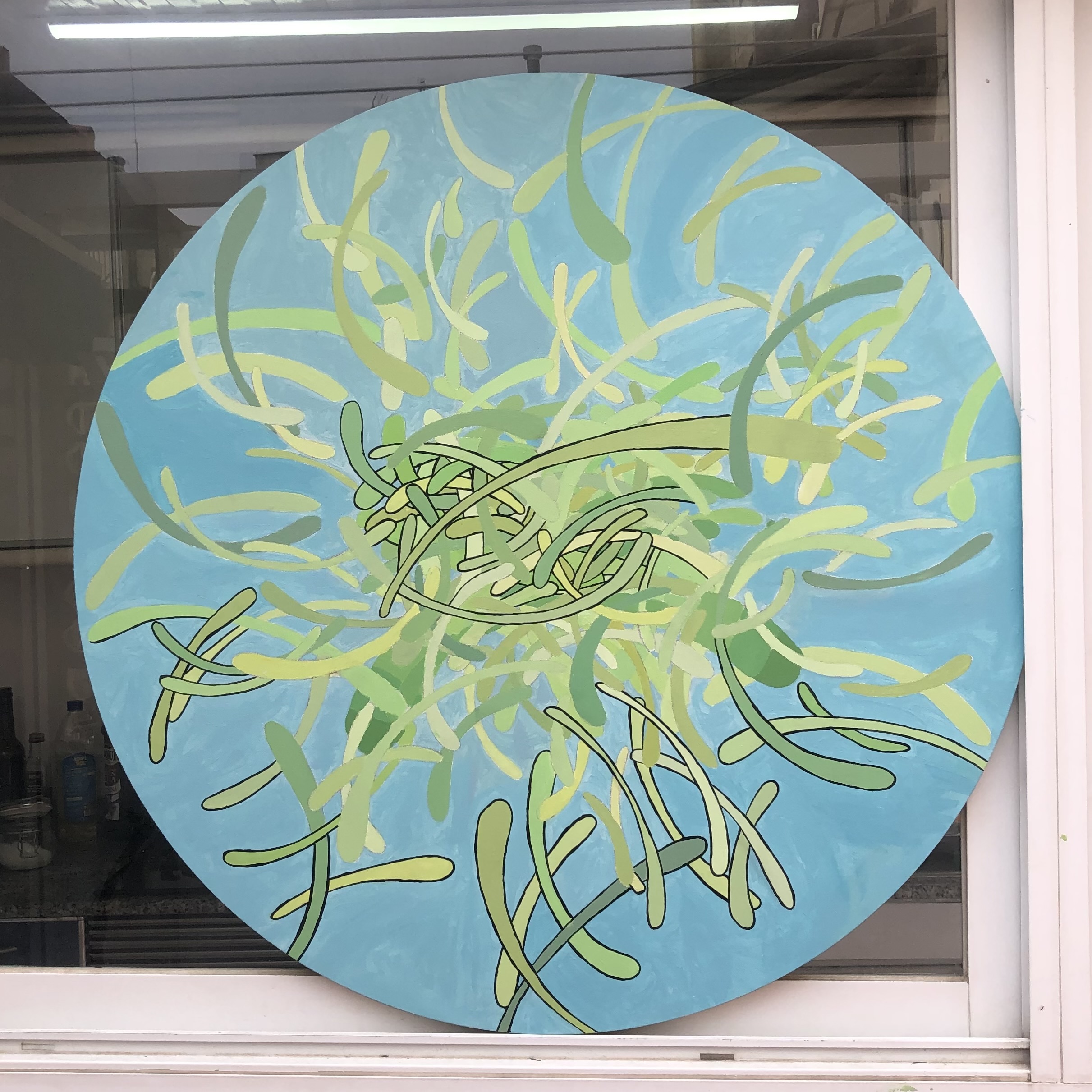 Cancer marks a turning point: the artist’s move to Barcelona and her first round canvas. Associated with home and memory, the sign mirrors her emotional adaptation and the quiet strength of formative relationships.