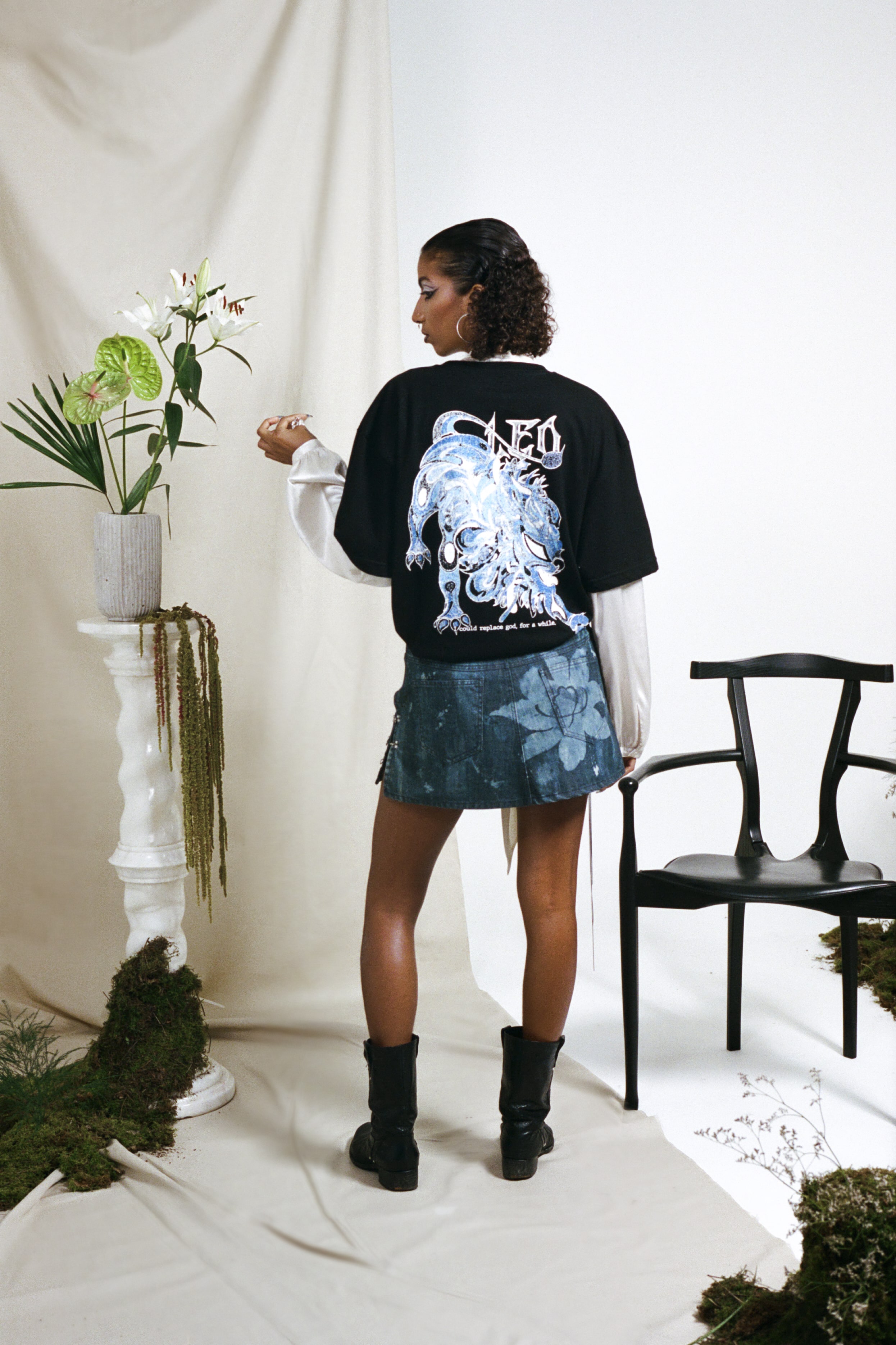 Created as an extension of her artistic practice, the T-shirt collection embodies casual ease with bold character. Each piece carries symbolic imagery that reflects identity and sparks conversation, designed for free spirits, adventurers, and creatives alike. Playful yet intentional, the garments mirror the joy Elene feels while creating, inviting wearers to experience the same.